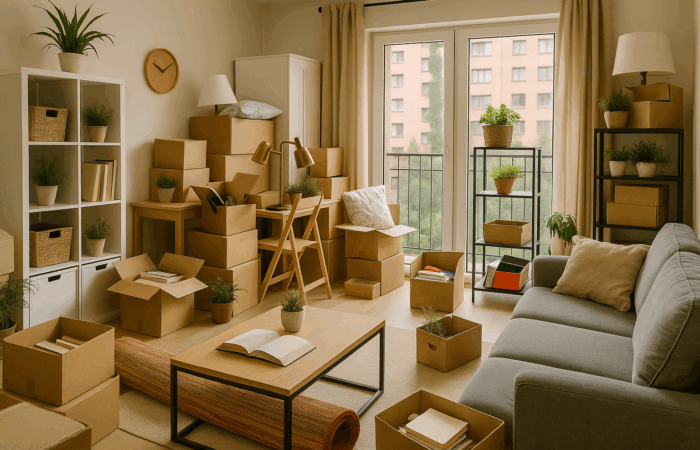 - Cintas adhesivas y etiquetas para organizar y sellar cajas fácilmente.